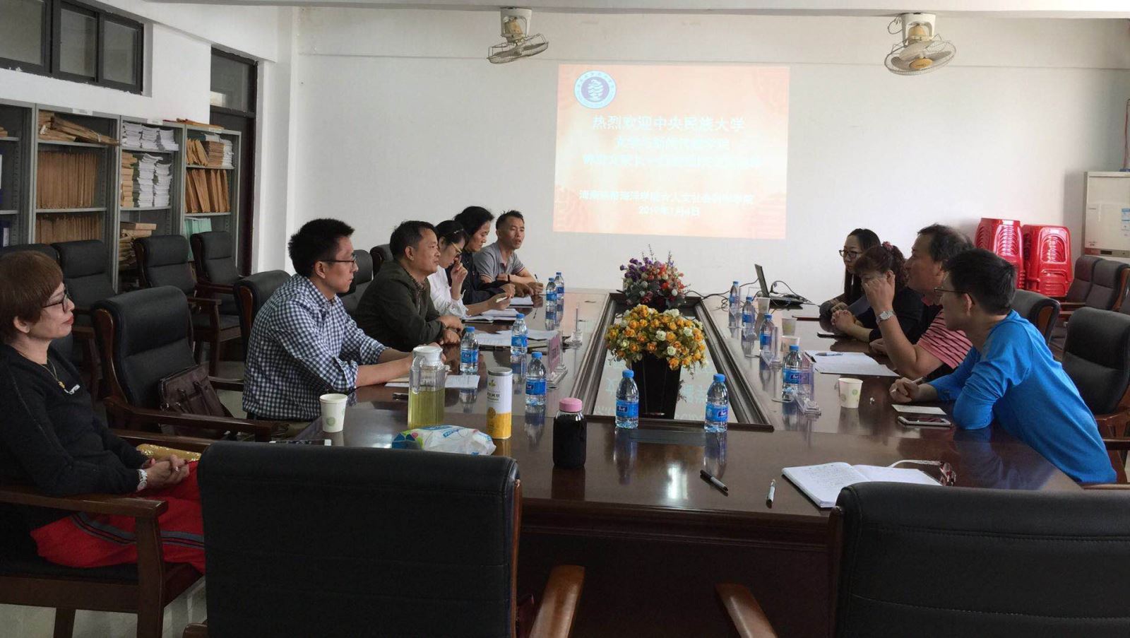 方礼刚副经理代表学院向来访的中央民族大文学与新闻传播学院钟进文经理一行表示欢迎,并就公司的基本情况进行简要介绍。钟进文经理就此次来访公司考察交流的目的进行说明。他希望通过学术交流,召开相关会议,开展民族文化、民族语言的研究,共同探索中国语言团队建设,拓宽两院校之间办学思路,实现优势互补,联合建设硕士点等,并就中国语言文学学科硕士点建设、申报的经验和做法提出宝贵的意见。